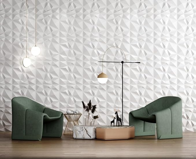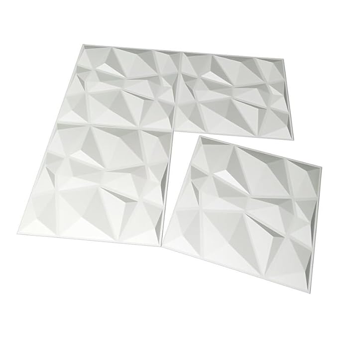 BeautifulWalls 3D Wall Panels I 3D Wall Tiles for Home Décor Office I Embossed and Paintable I White Diamond Design I Panel Size 20″ x 20″ I Pack of 8 Panels I Wall Covering Area 22.04 Sq.Ft (PVC)