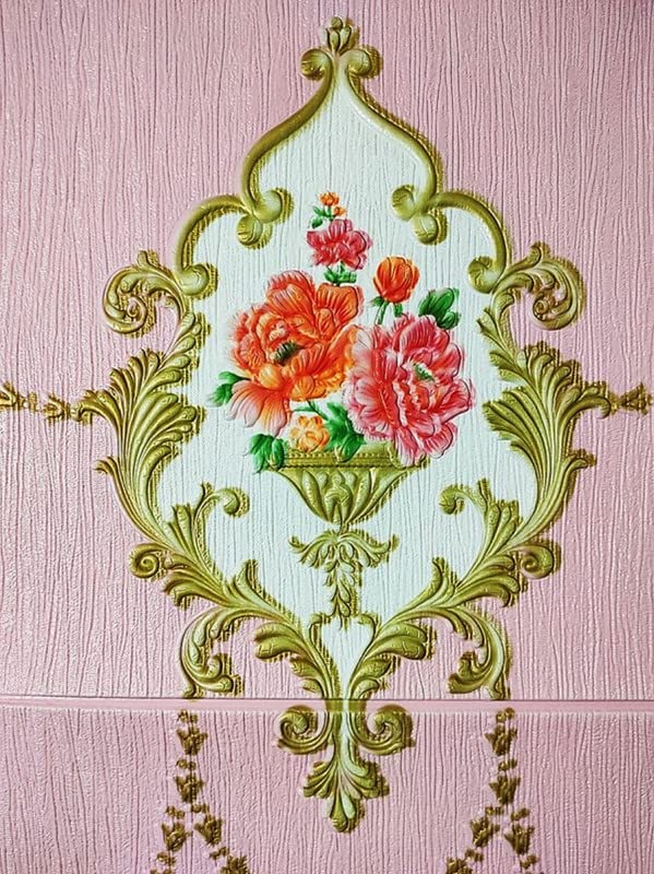 Golden Cart Damask Wallpaper for Walls 3D Design (1 Pc) I Foam Wall Paper Sticker Panels I Textured & Waterproof 3D Wall Tiles I Wall Decor, Room Decor, Home Decor (Pink, 1 Piece, 70 X 70 cm)